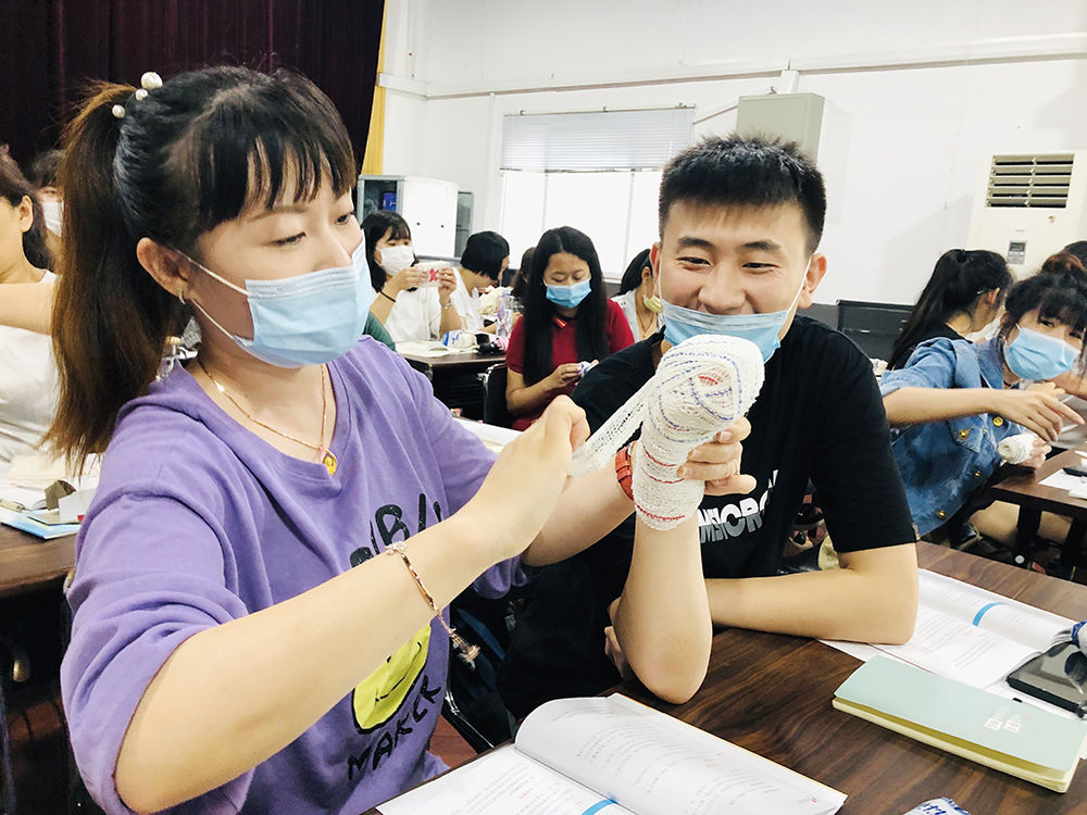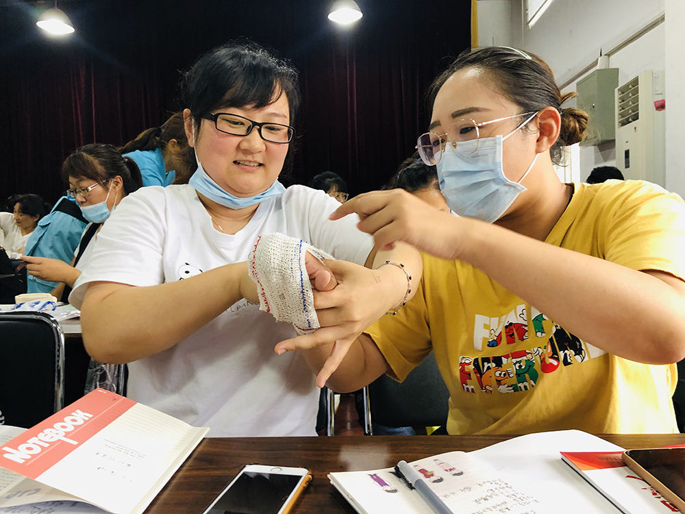 大家學得認真,包扎的又快又標準。