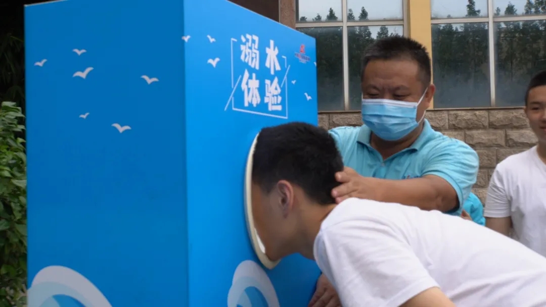 在抗震知識(shí)學(xué)習(xí)和抗震平臺(tái)體驗(yàn)部分,老師向同學(xué)們普及5月12日為全國(guó)防震減災(zāi)日。重點(diǎn)向同學(xué)們介紹并示范地震保護(hù)動(dòng)作。老師邀請(qǐng)同學(xué)們分組應(yīng)用保護(hù)動(dòng)作到地震體驗(yàn)平臺(tái)體驗(yàn)?zāi)M地震過(guò)程。同時(shí),老師講解了遇到抽筋時(shí)的處理方法和在海邊溺水時(shí)的應(yīng)對(duì)措施,并邀請(qǐng)數(shù)位同學(xué)現(xiàn)場(chǎng)進(jìn)行溺水體驗(yàn)。
