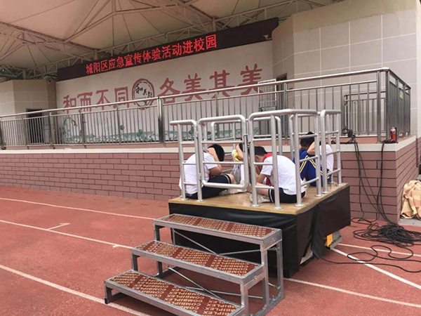 本次安全應急體驗活動由山東海麗應急安全培訓中心進行授課,采用了理論培訓加實地體驗的形式,涉及災難警示、消防逃生、地震避險、地鐵逃生、人民防空、防溺水等多個板塊。通過寓教于樂的形式,讓學生們圍繞逃生繩索系法、滅火器使用、火災疏散時的逃生體驗、感受和了解地震、學習人工救護(心肺復蘇)等環節開展實操體驗。